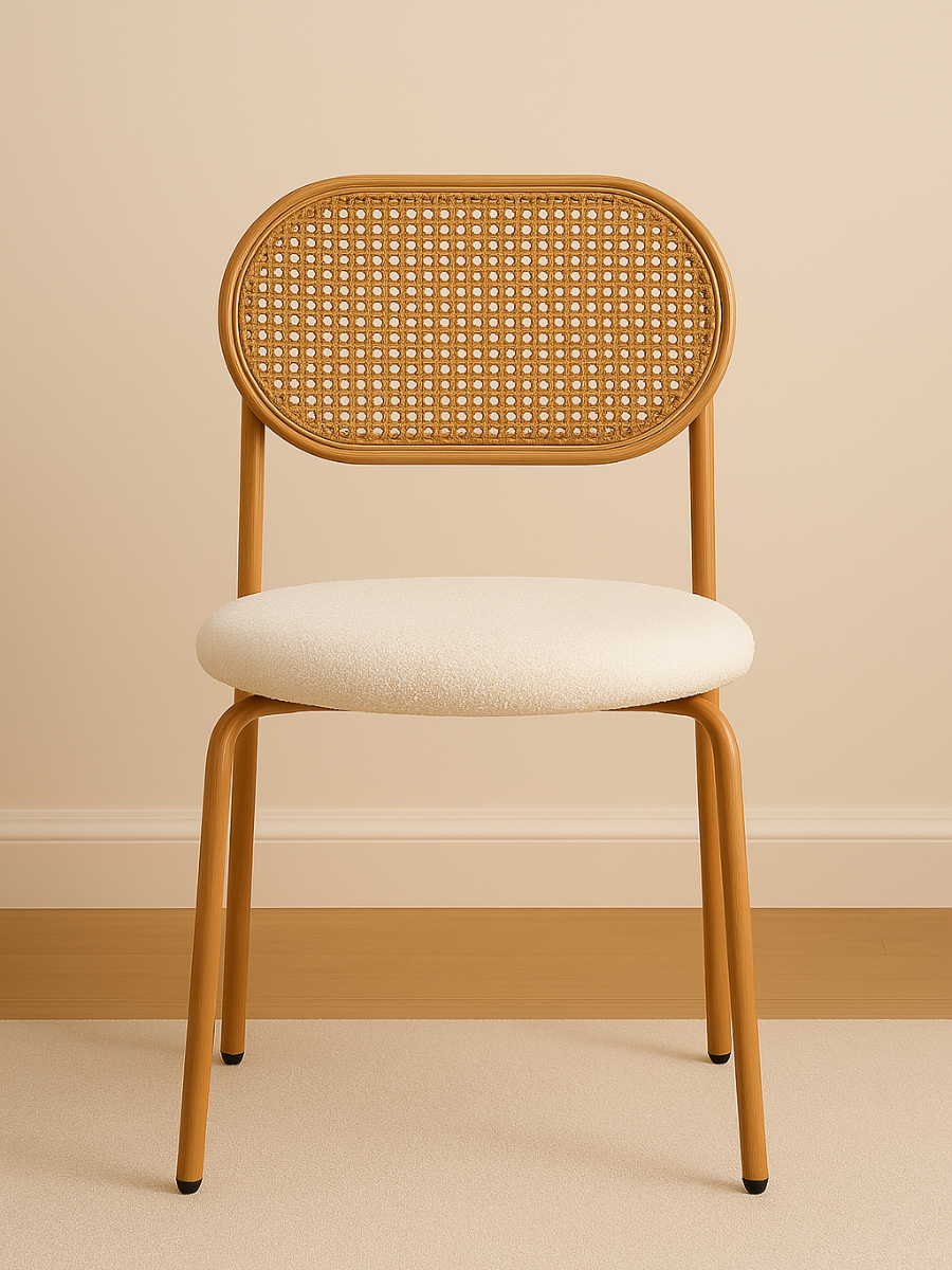 Add warmth and texture to your space with the Arden White Sherpa Rattan Chair, featuring a PE rattan backrest and a plush, stain-resistant sherpa-style seat. Designed for both comfort and style, it offers high-density foam cushioning and elegant wood-look metal legs. Perfect for dining, accent seating, or a cosy reading nook, it’s a beautiful blend of form and function.
