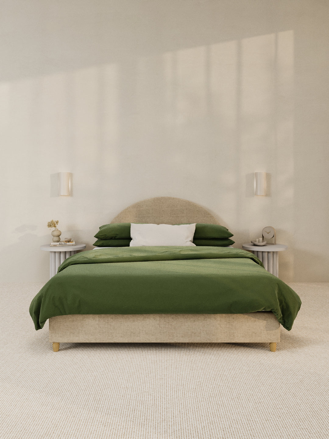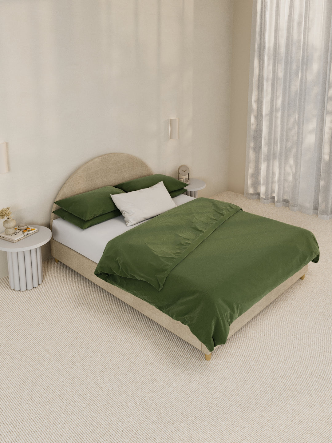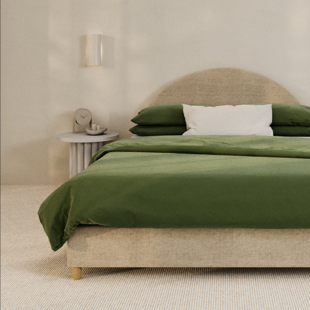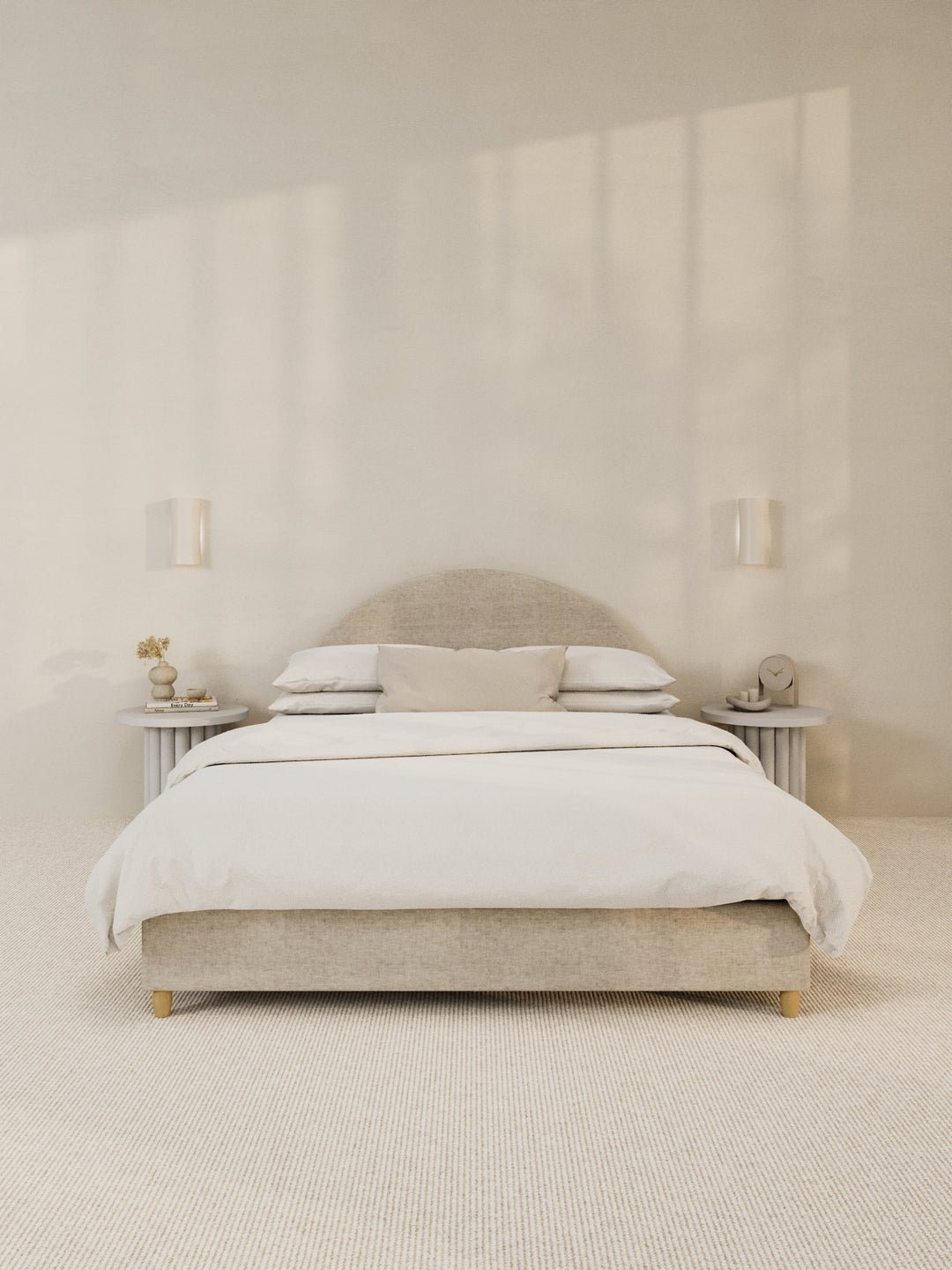 The Carla Curve Beige Bed Frame showcases a softly arched headboard that brings elegance and comfort to your bedroom. Upholstered in premium linen-look fabric, it offers a timeless neutral style that suits both modern and classic interiors.