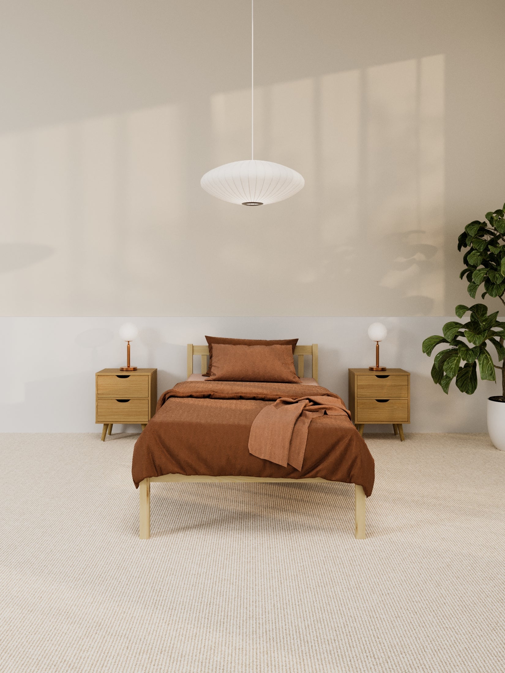 The Heron Classic Wooden Bed Frame combines timeless style, strength, and comfort in one elegant design. Crafted from premium solid pine with reinforced plywood slats, it delivers long-lasting durability and dependable mattress support. Finished with smooth edges and a non-toxic SGS-approved coating, this bed frame is safe, eco-friendly, and perfect for any modern bedroom.