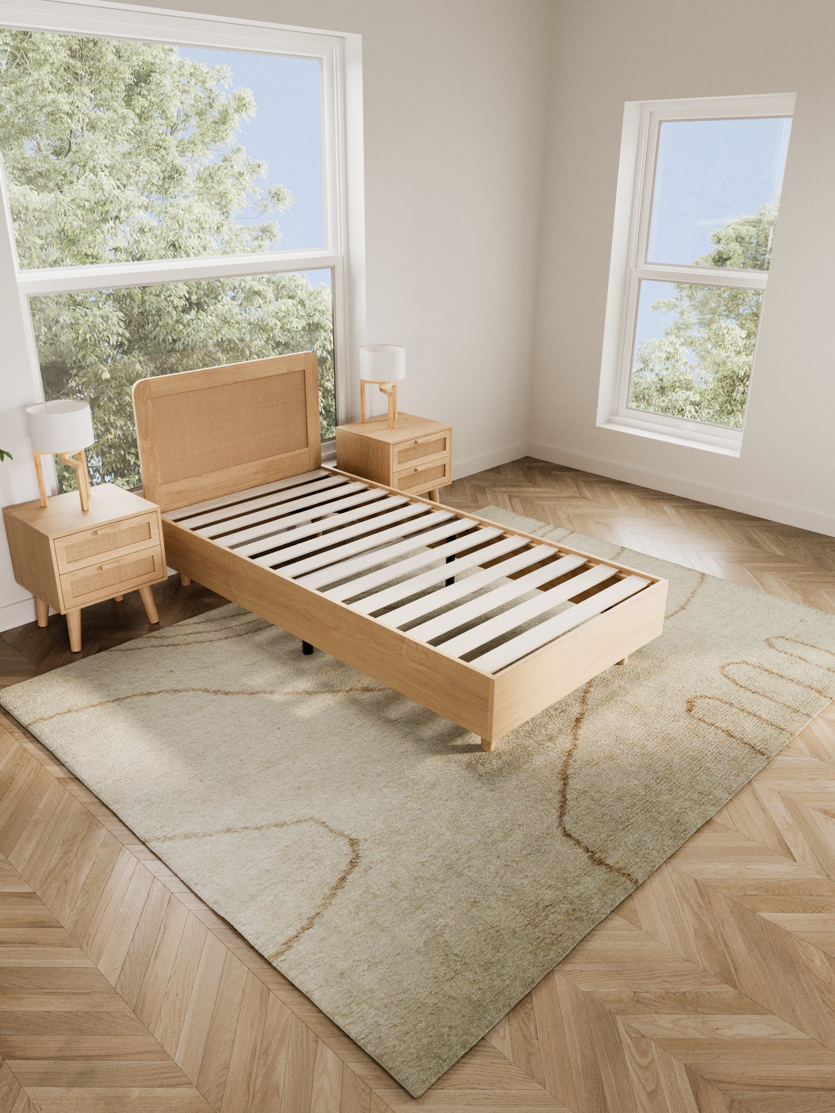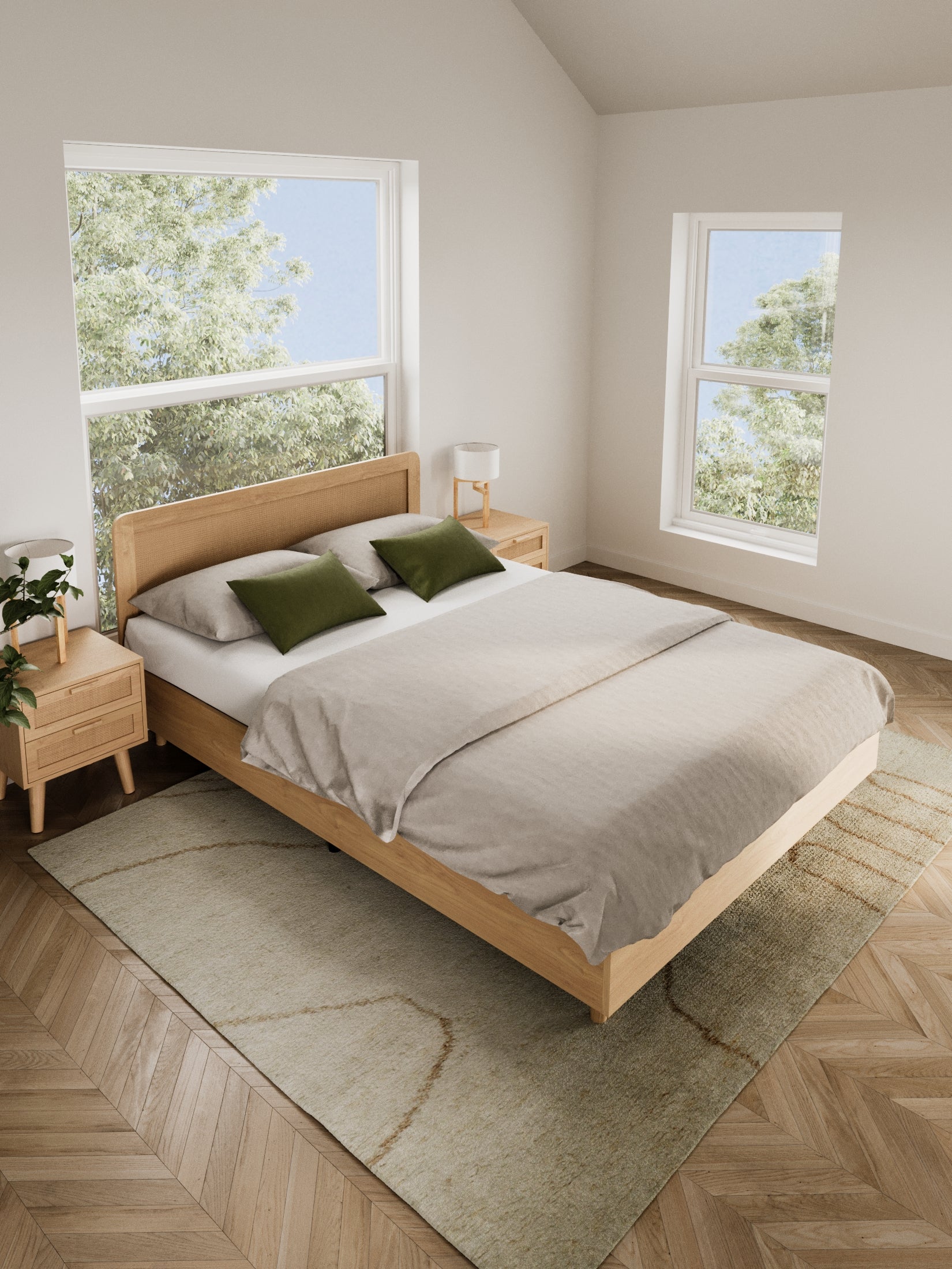 Intricately crafted natural rattan adds warmth, texture, and a timeless focal point to your bedroom.