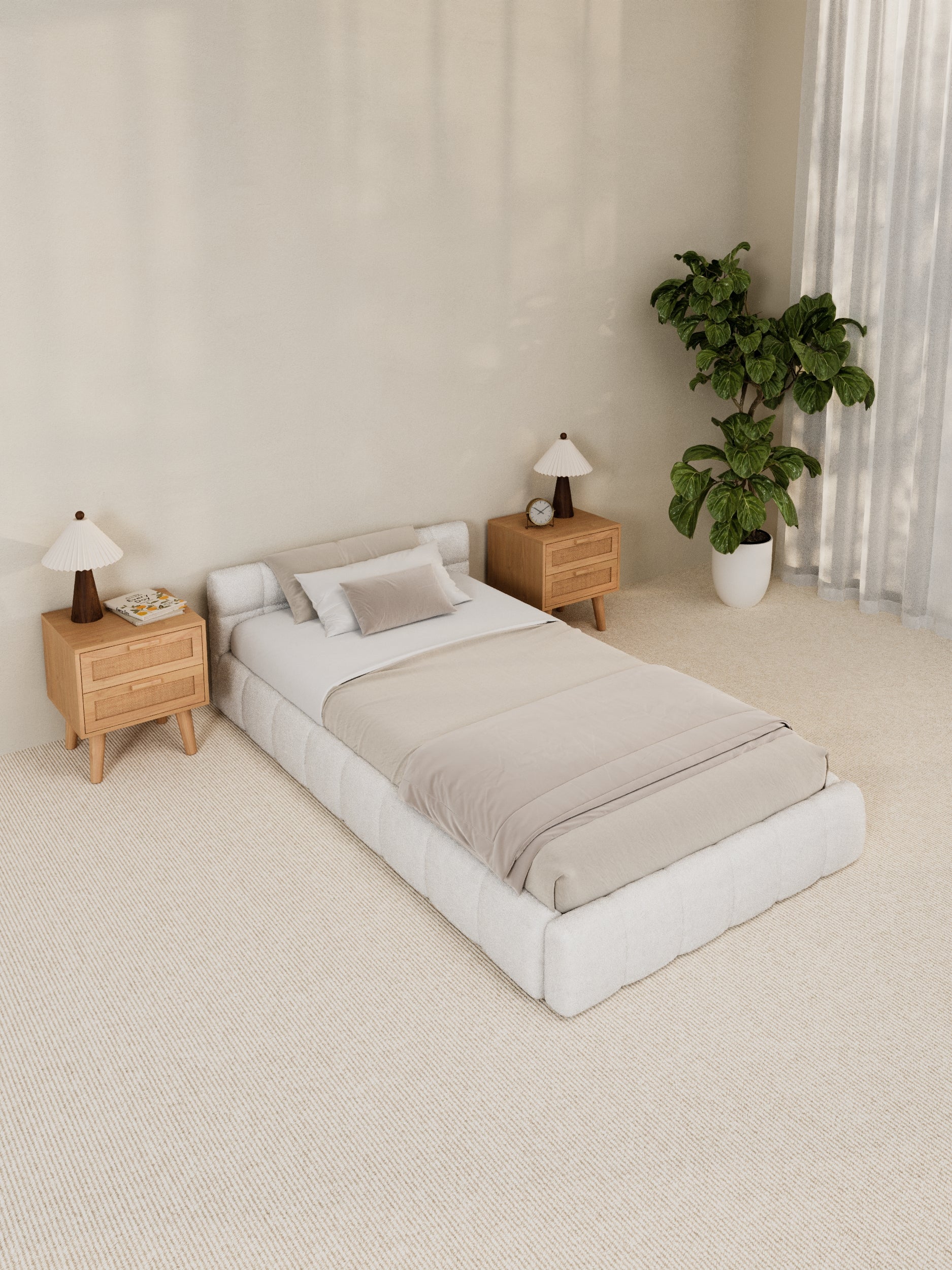 Softly cushioned and upholstered in premium bouclé fabric, creating a cosy and stylish spot for reading or lounging.
