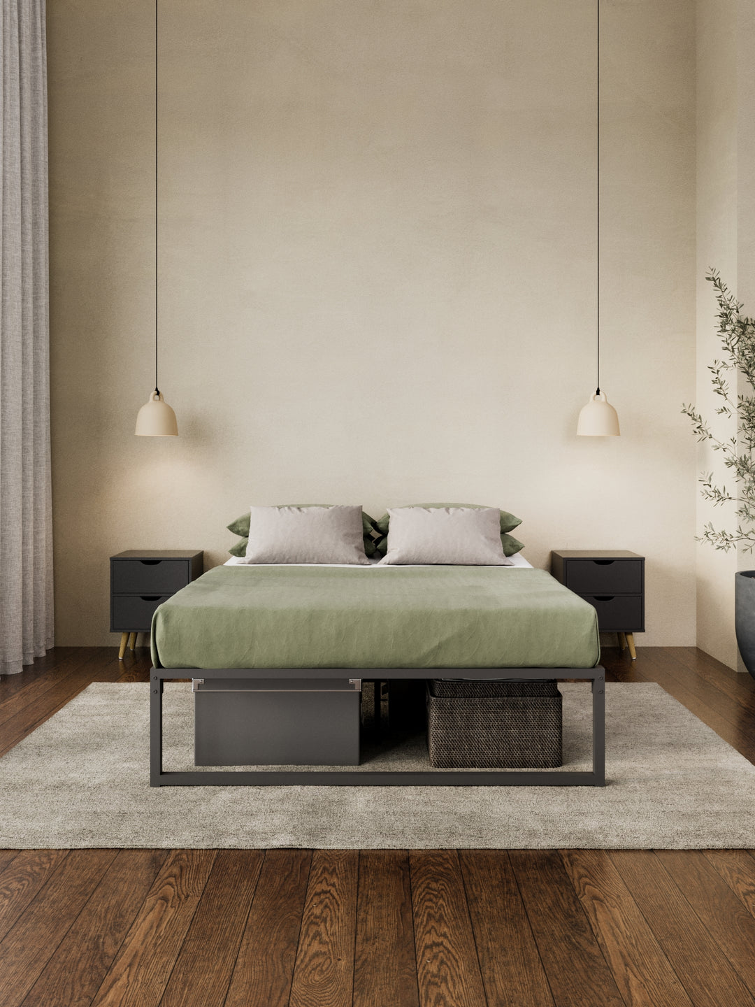 Designed for comfort, the metal slatted base provides excellent mattress support and promotes spinal alignment for restful sleep. The elevated design offers under-bed storage, keeping your bedroom space organised.