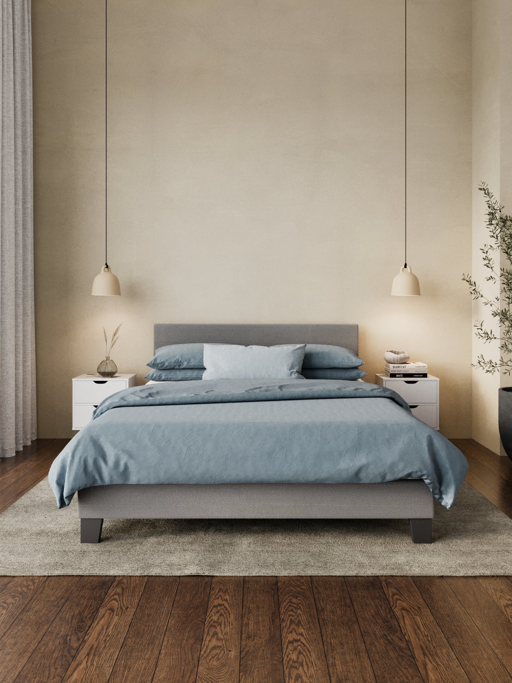 Designed for convenience and timeless appeal, the Francis Grey Fabric Bed Frame includes a sleek, modern bedhead, sturdy support legs, and a hassle-free assembly process. Enhance your bedroom with the ultimate blend of sophistication and practicality from Ventura Living's best-selling Francis Grey Fabric Bed Frame.