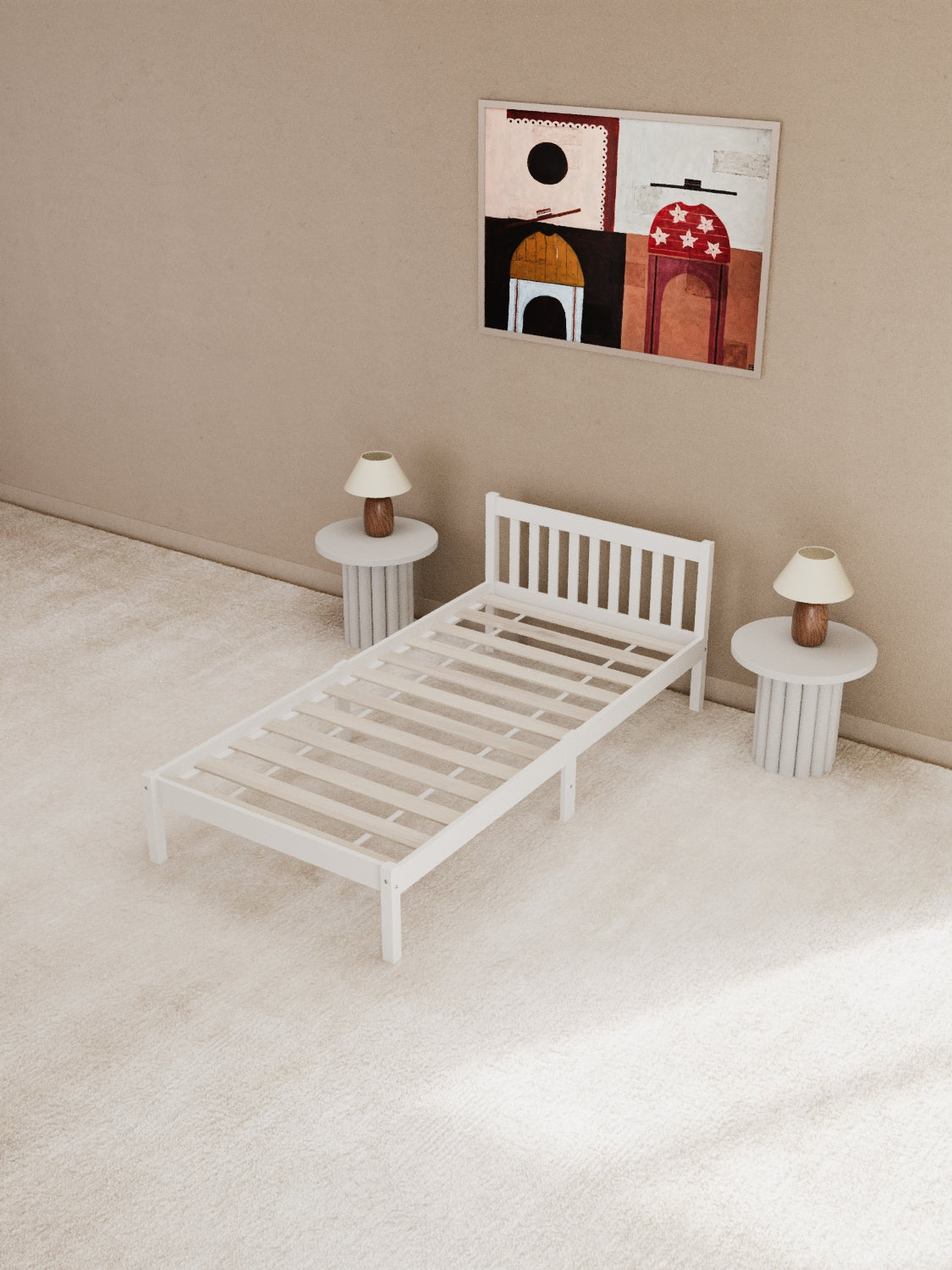 The Heron White Timber Bed Frame combines timeless style, strength, and comfort in one elegant design. Crafted from premium solid pine with reinforced plywood slats, it delivers long-lasting durability and dependable mattress support. Finished with smooth edges and a non-toxic SGS-approved coating, this bed frame is safe, eco-friendly, and perfect for any modern bedroom.