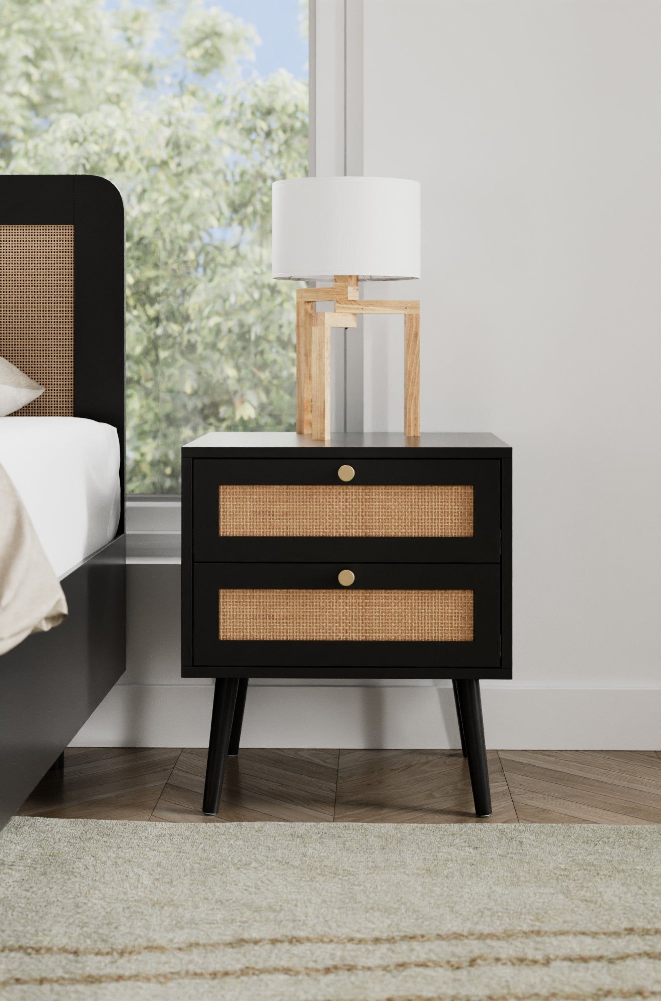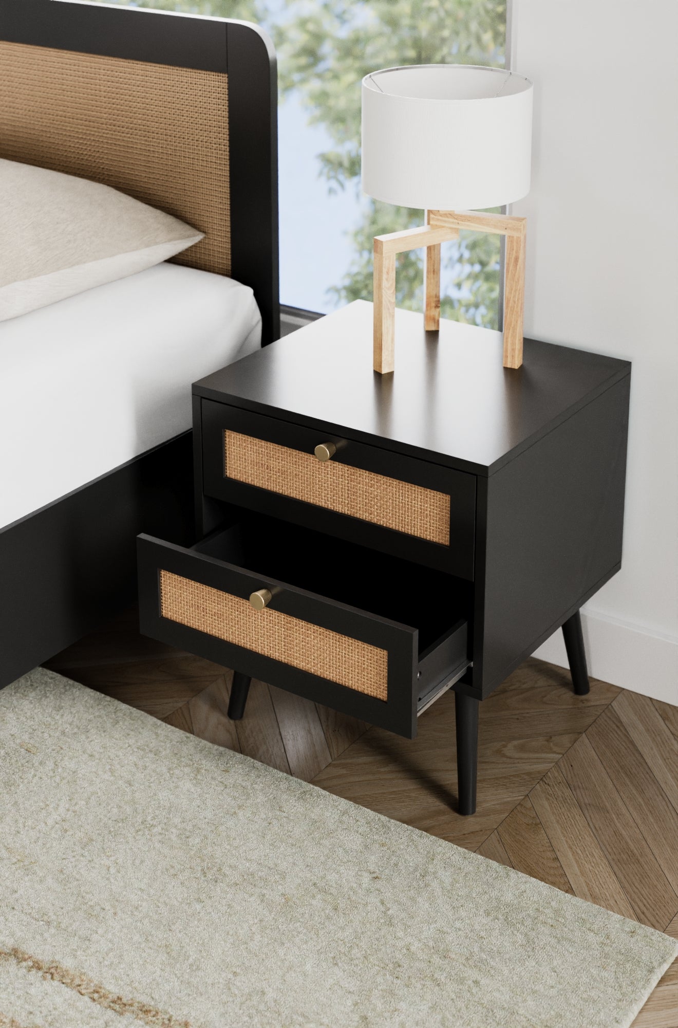 Bring timeless elegance to your bedroom with the Ronnie Black Rattan Wooden Bedside Table.