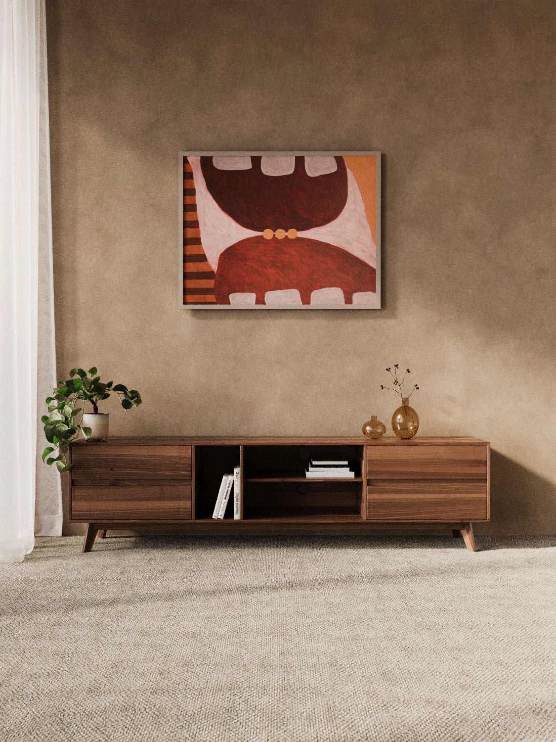 Designed to bring balance, warmth and functionality to your living space, the James Luxe Walnut Entertainment Unit 210cm features clean lines, a rich walnut wood look and practical built in storage. Its low profile design complements modern and mid century interiors with ease, while providing ample space for everyday entertainment essentials.