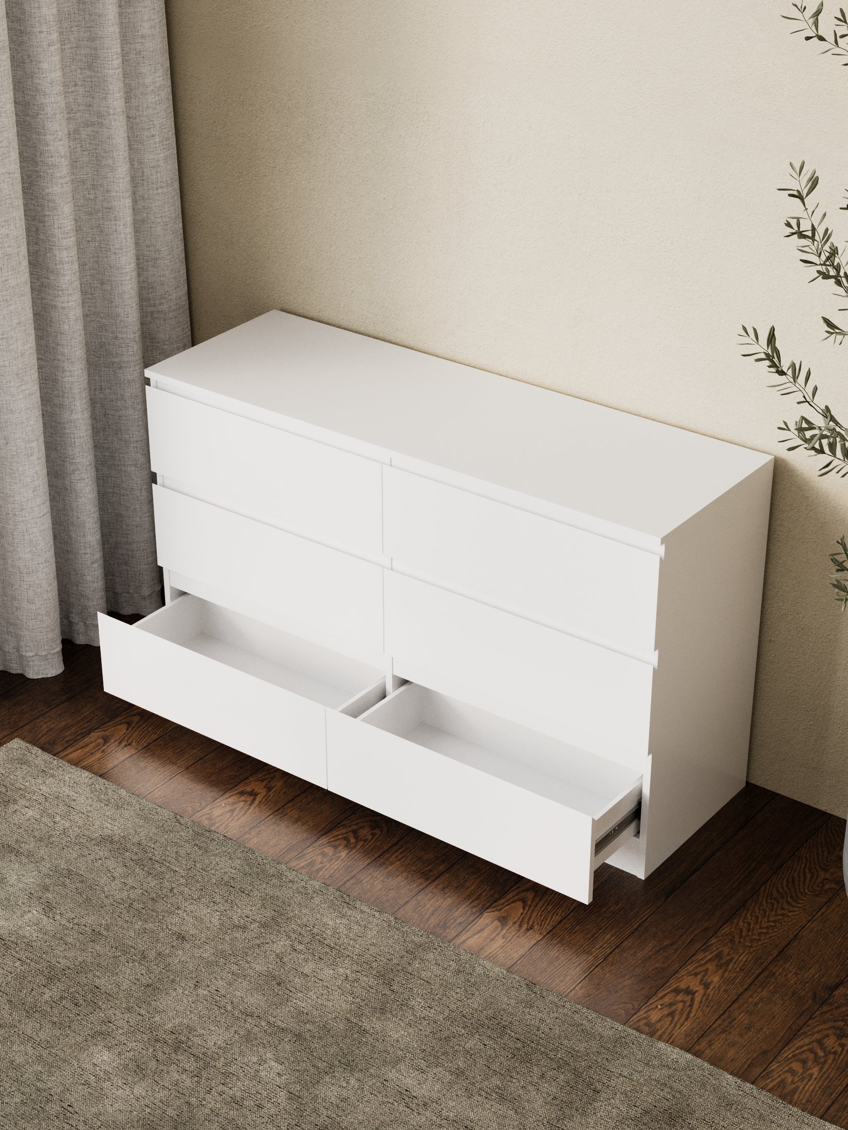 Six large drawers provide ample space to organise clothes accessories and other essentials.