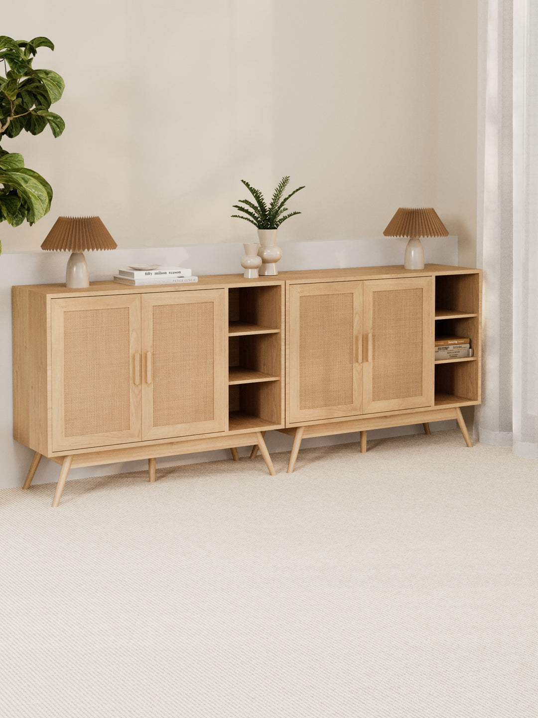 Genuine rattan door panels add natural texture and timeless charm to your space.