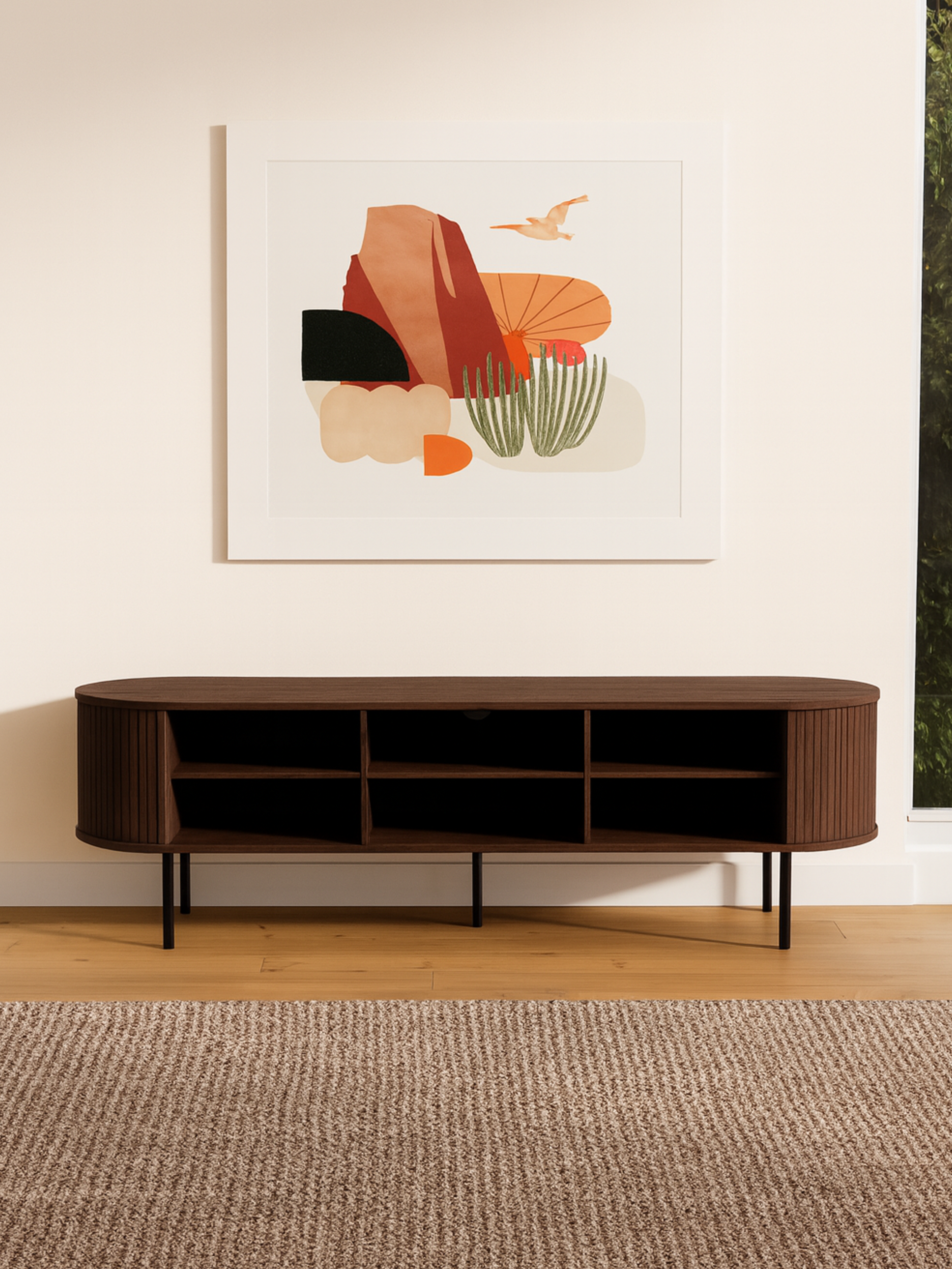 The 170cm streamlined structure offers a clean, minimalist look while perfectly supporting your TV and styling pieces.
