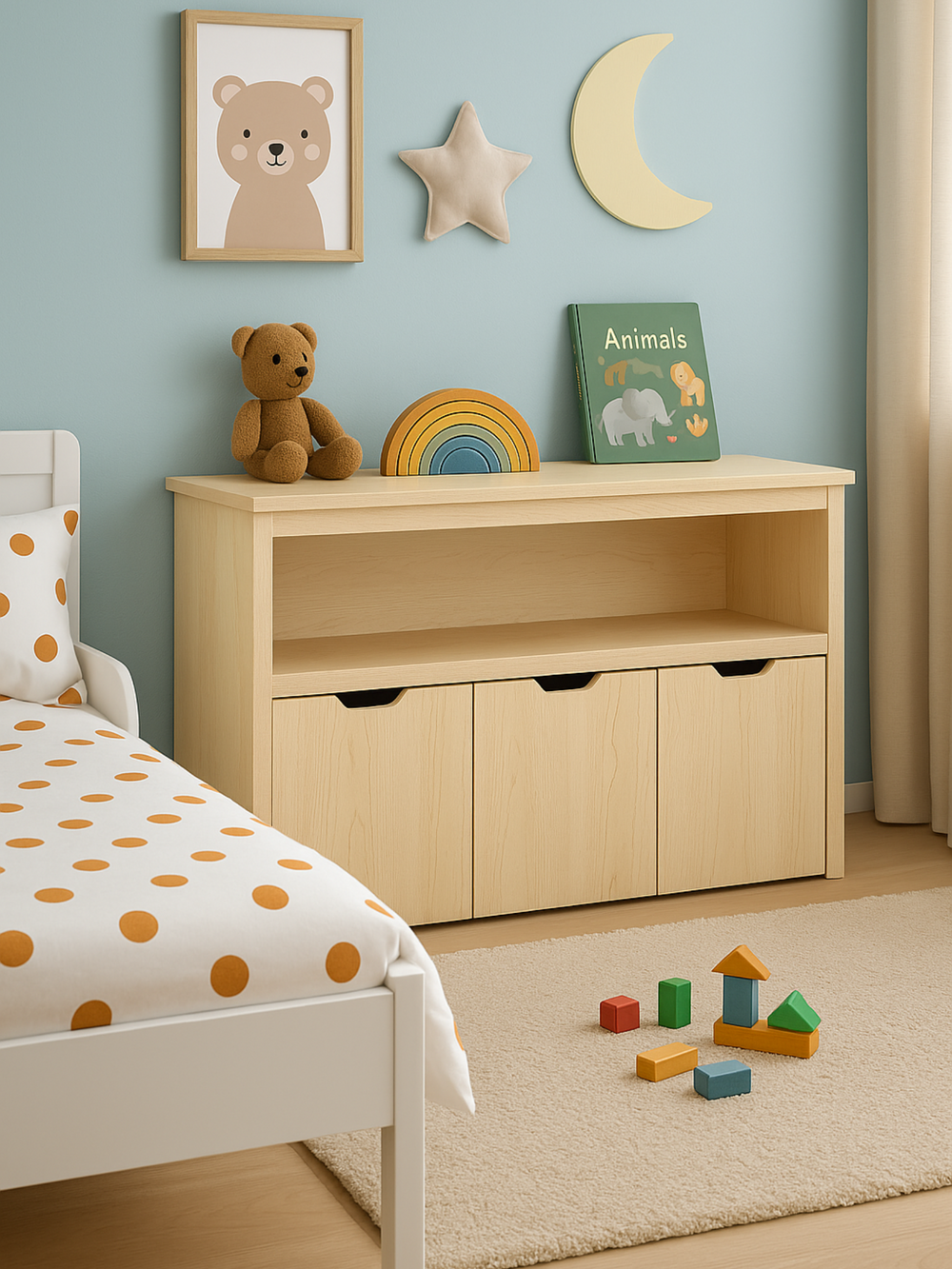 Keep your child’s space neat, safe and stylish with the Mika Natural Kids Toy Storage Cabinet Box. Thoughtfully crafted for both function and warmth, this organiser features a natural wood finish, open shelving and smooth glide storage tubs with wheels. Ideal for bedrooms or playrooms, it adds a calming, earthy touch while offering the perfect place to store toys, books, games and more. A simple way to encourage tidiness and create a beautifully organised space.