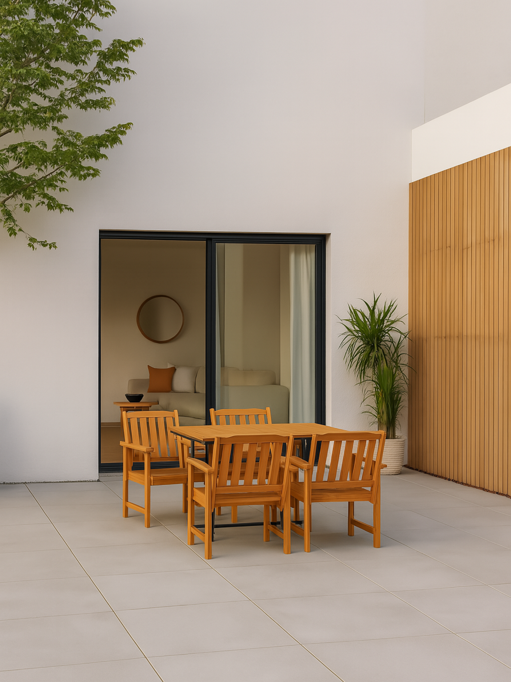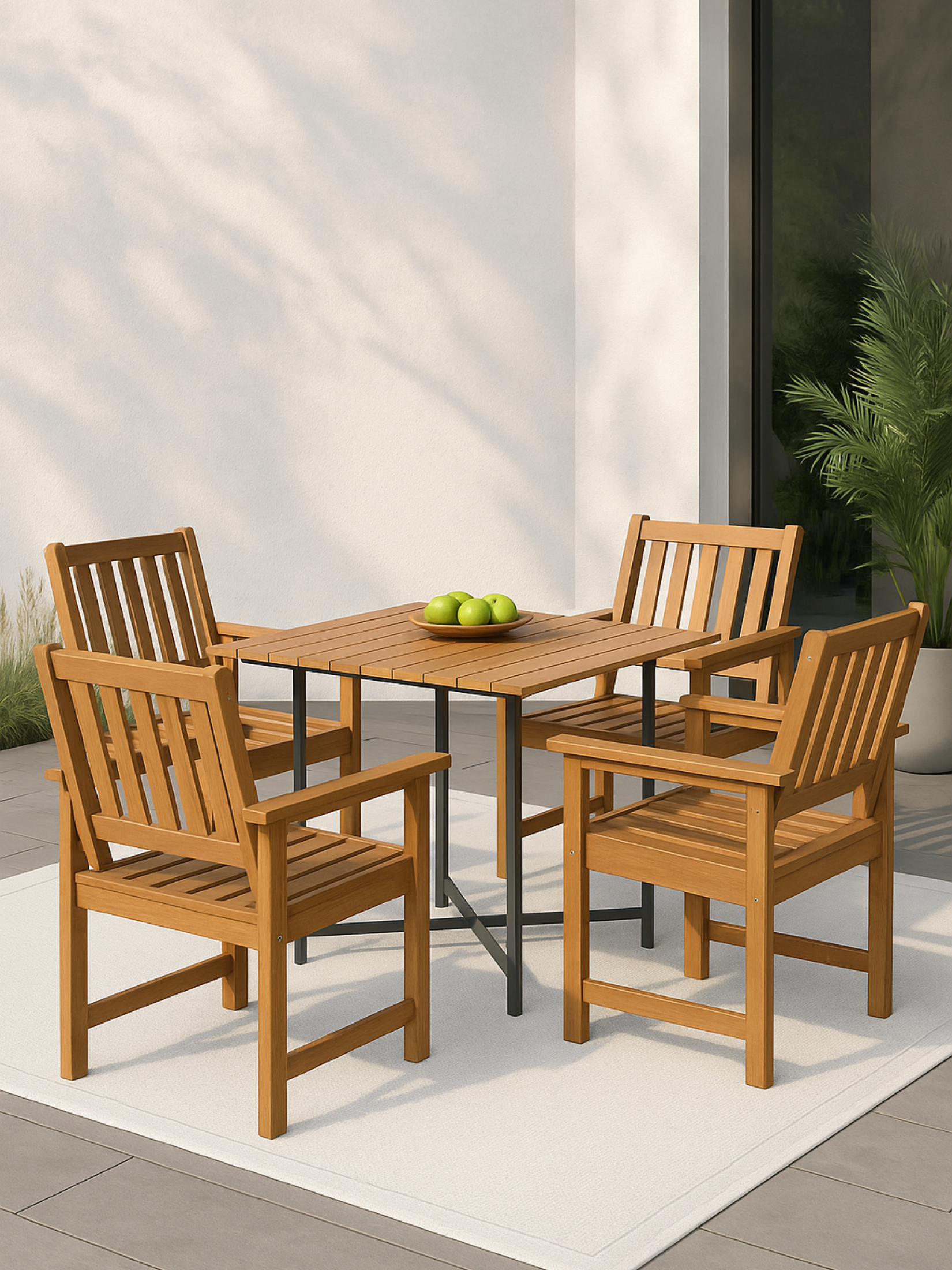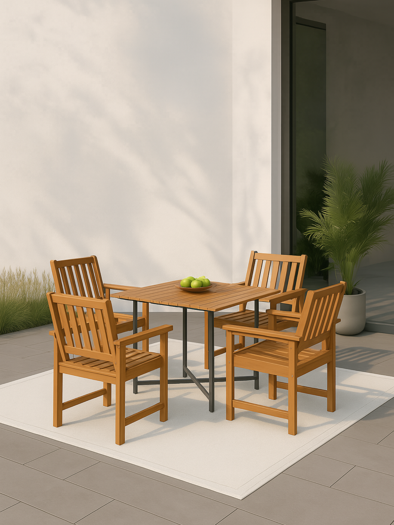 The Julie Classic Wooden 4 Seater Outdoor Dining Set combines traditional charm with everyday functionality. With a spacious wood grain tabletop and four beautifully crafted wooden chairs, this set is made for relaxed alfresco dining and outdoor entertaining.