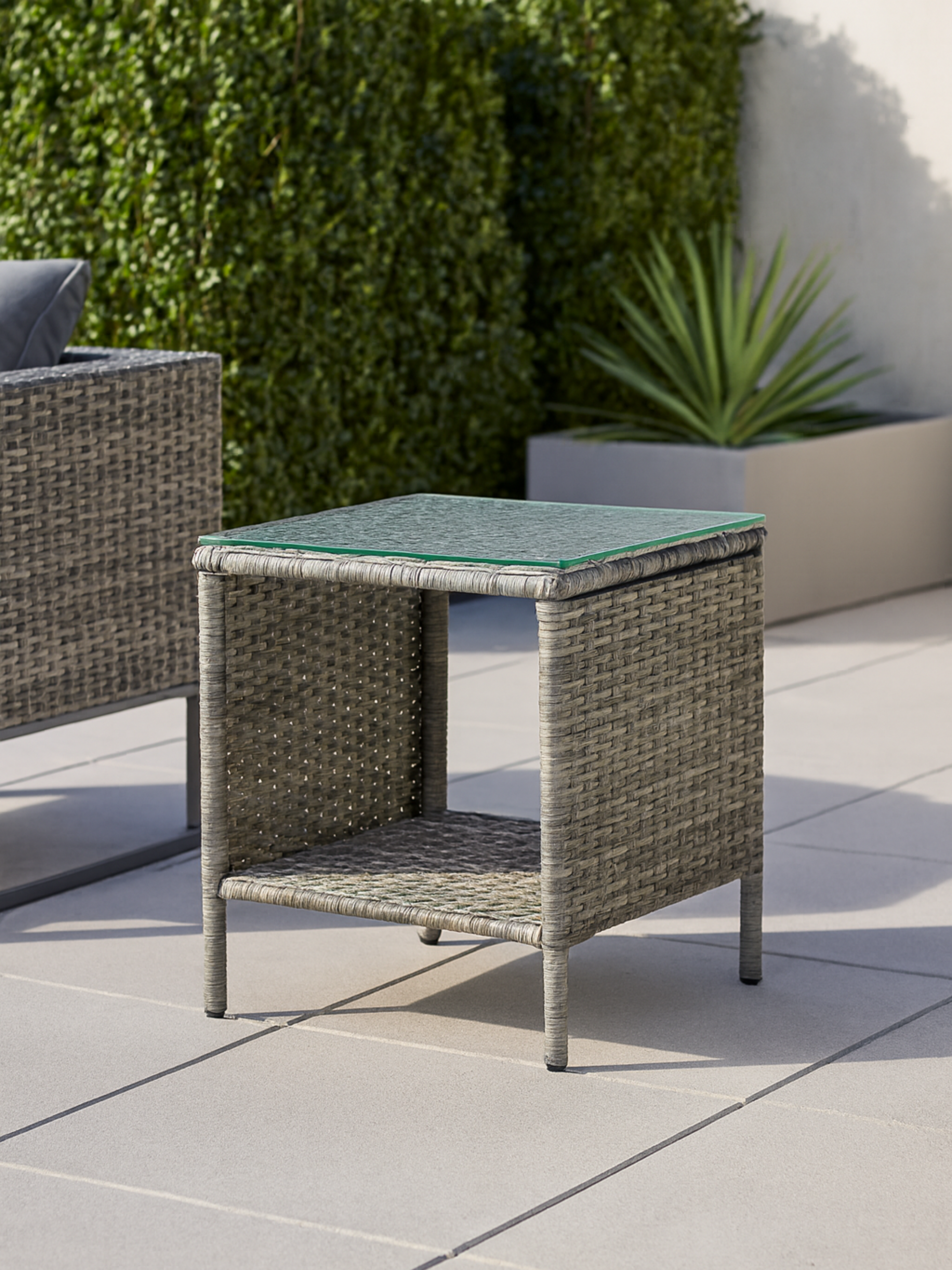 Elevate your outdoor living with the Byron Bay Grey Outdoor Table, a sleek and modern piece designed to complement any patio, balcony or poolside space. Crafted with a handwoven rattan-style finish and topped with durable tempered glass, this table blends coastal charm with everyday practicality. Its UV resistant PE wicker and powder coated galvanised steel frame ensure long lasting performance through Australian weather conditions. Perfectly matched to pair with the Byron Bay Grey Outdoor Sun Lounge Set, it completes a cohesive and stylish outdoor setting with ease.