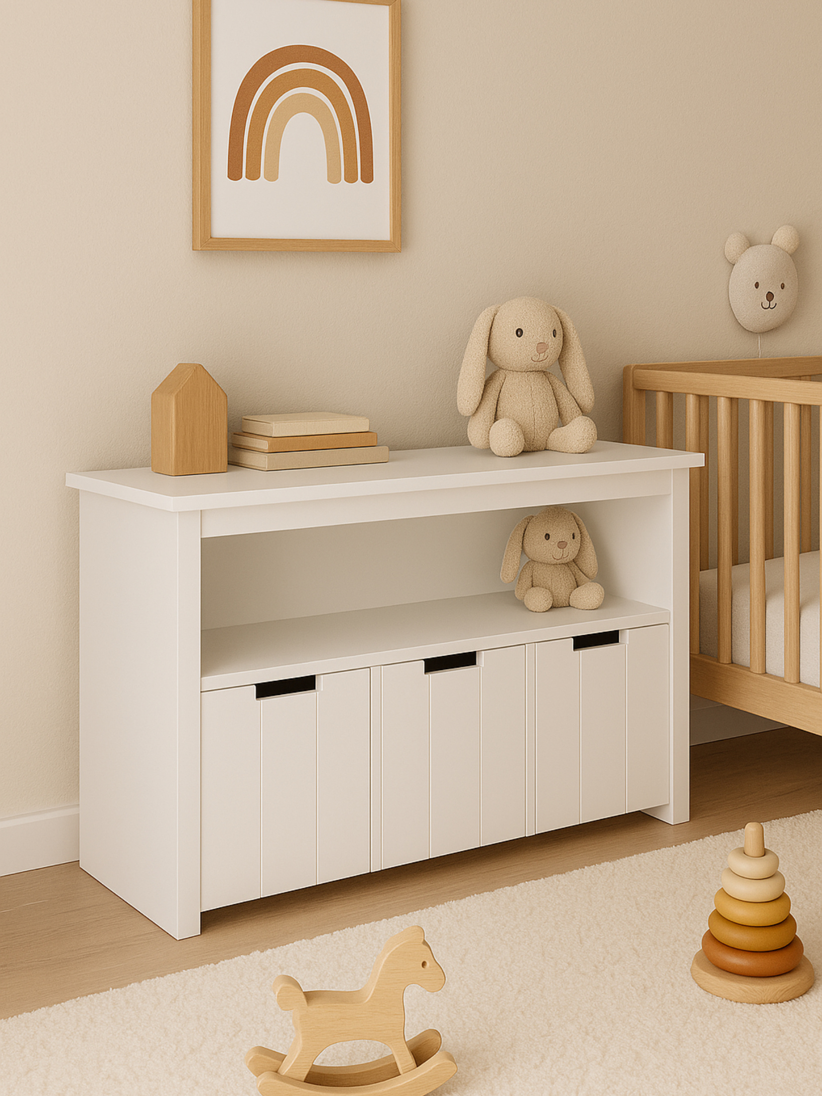 Keep your child’s space neat, safe, and stylish with the Bella White Kids Toy Storage Cabinet Box. Designed with both practicality and charm in mind, this all-in-one organiser features a smooth white finish, open shelves, and portable storage tubs on wheels. Ideal for bedrooms or playrooms, it’s the perfect way to store toys, books, games, and more while encouraging tidy habits from a young age.