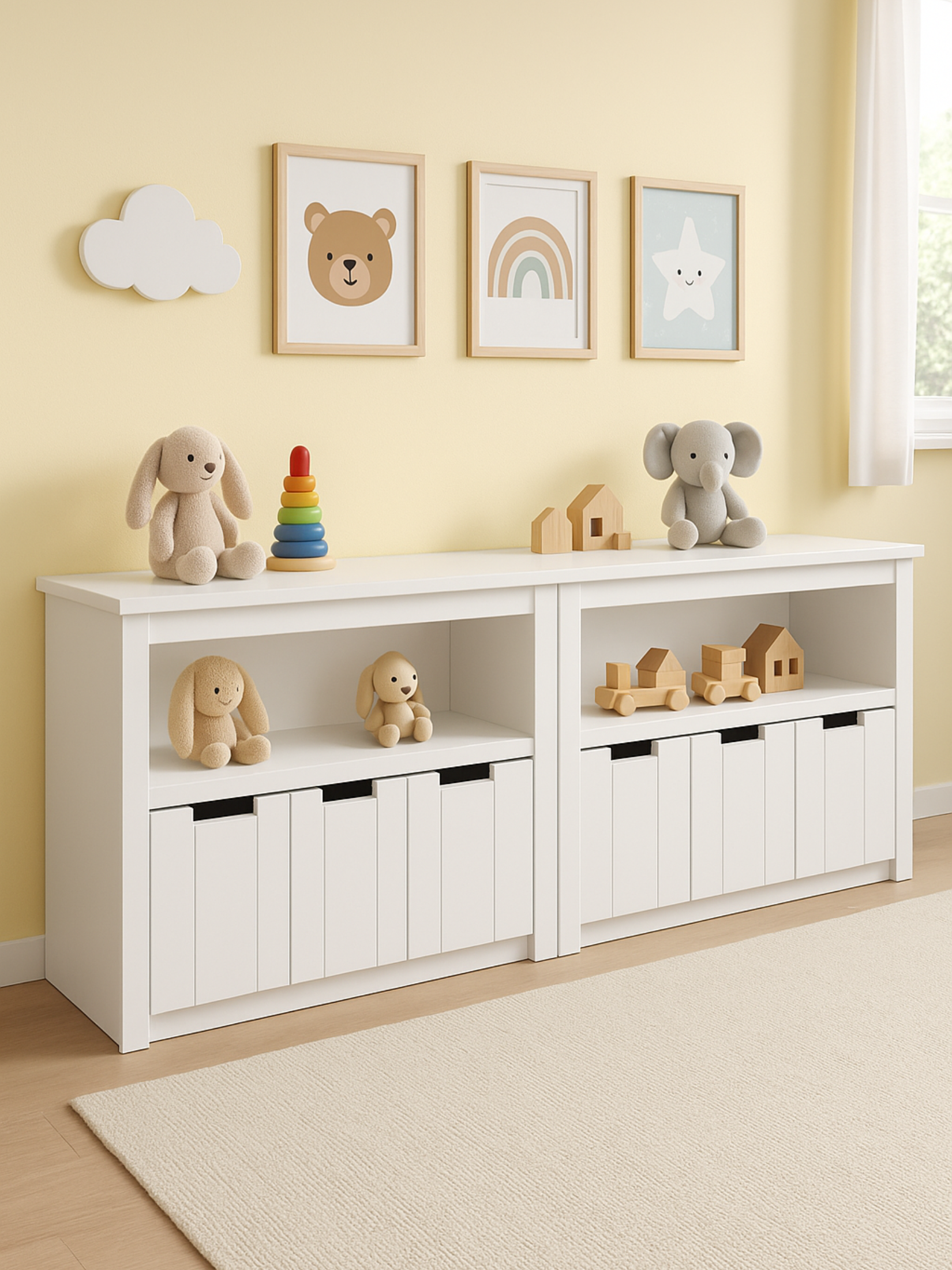 Ideal for storing toys, books, clothing or craft supplies across bedrooms or play spaces.