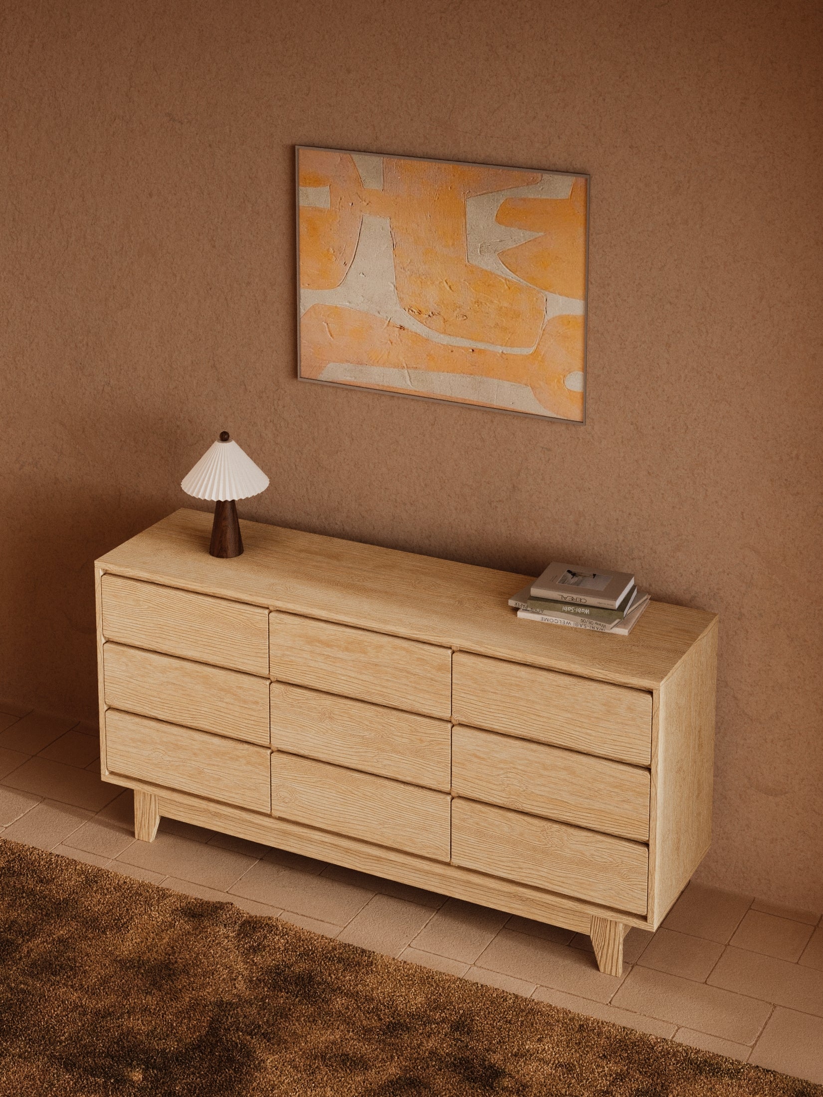 Georgie Natural Oak Lowboy 9-Drawer Dresser
