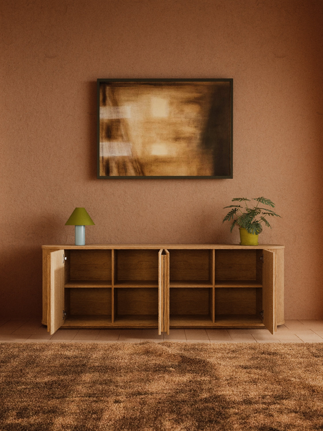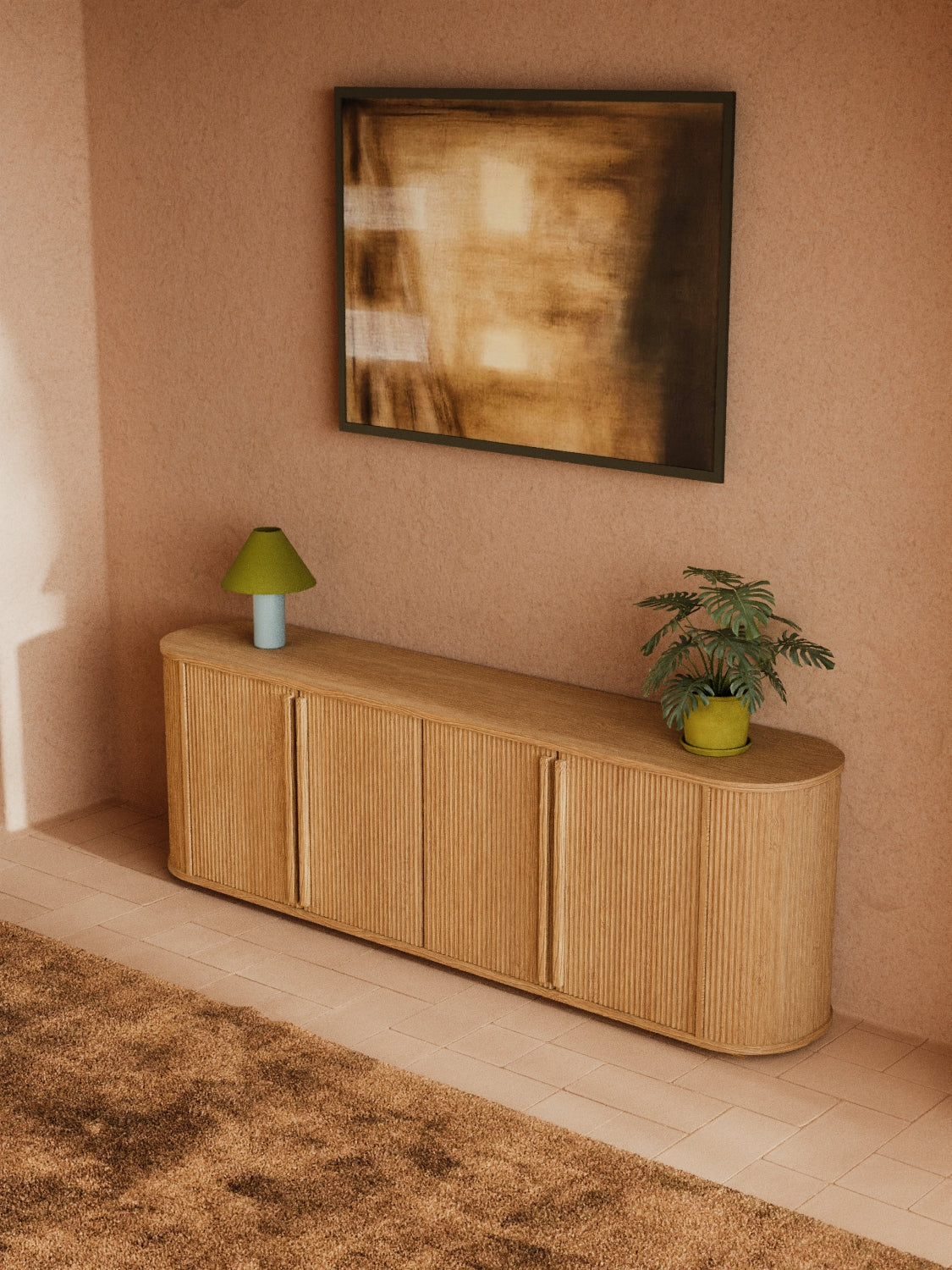 The Nadia Luxe Natural Fluted Entertainment Unit 200cm is designed to bring effortless style and functionality to your living space. Inspired by classic mid century design, its vertical fluted detailing and softly curved shape add texture, warmth and visual interest without overpowering the room.