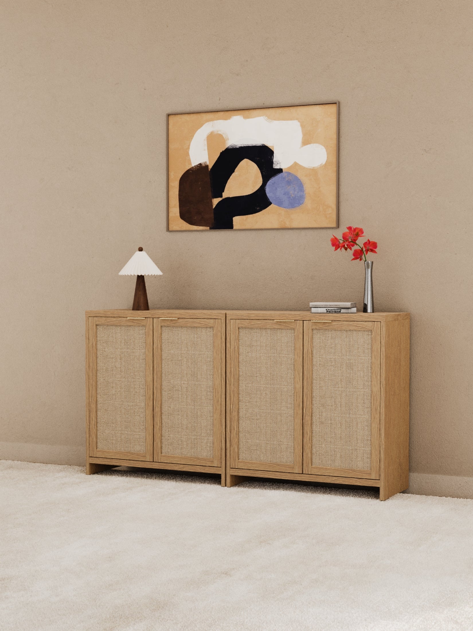 Bring warmth, texture and effortless style into your home with the Stevie Natural Rattan Sideboard Cabinet. Featuring beautifully woven rattan panels paired with a clean, modern silhouette, this versatile storage piece adds a relaxed yet refined feel to living rooms, bedrooms, hallways or dining spaces. With spacious internal storage, smooth-glide drawers and a generous top for styling, it’s designed to look good while keeping everyday essentials neatly organised.