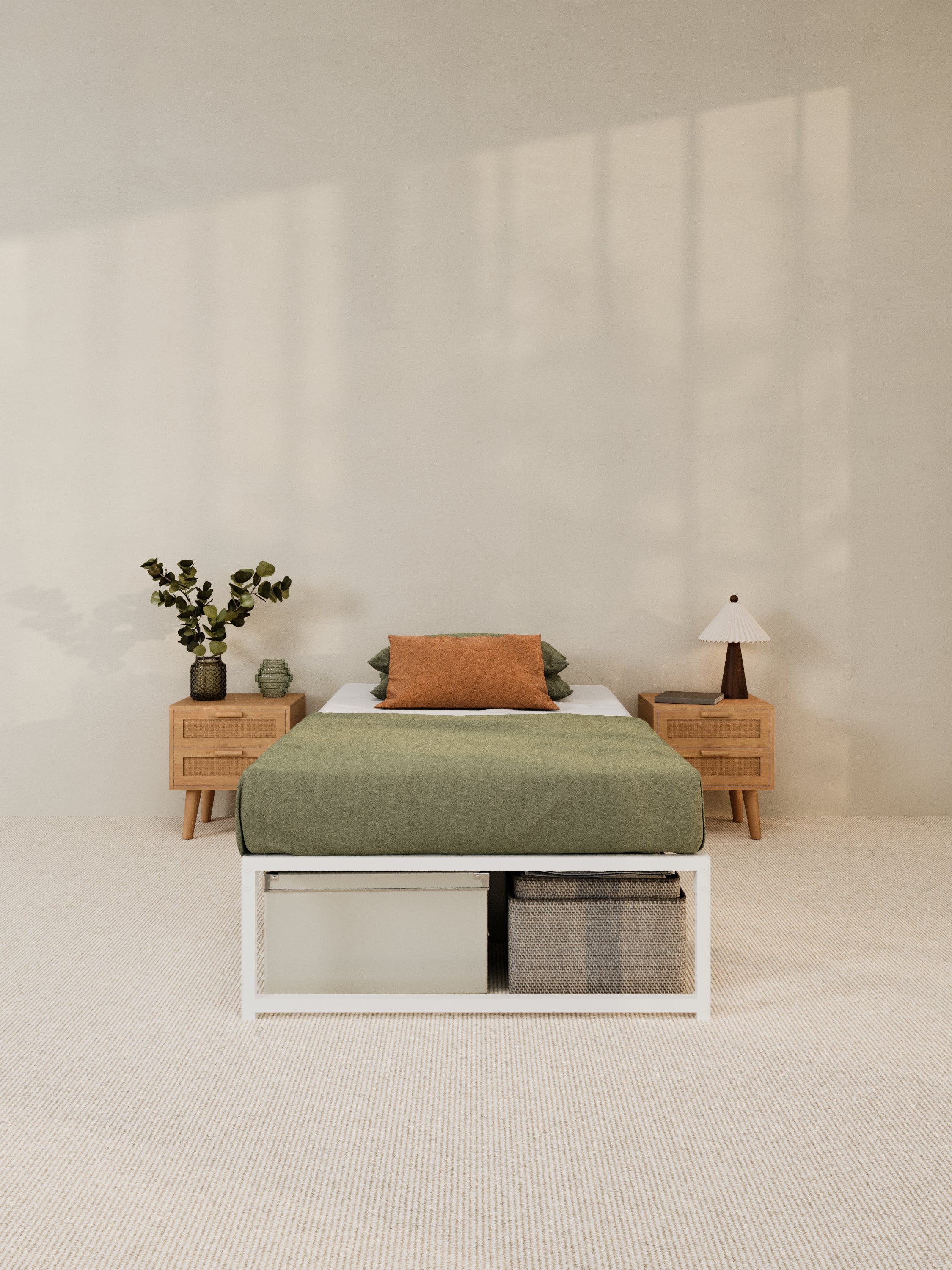 Perfect for smaller spaces or anyone needing extra storage, the Theo bed base features an elevated design that allows generous room underneath for boxes, baskets or seasonal storage. Its durable steel frame offers sturdy, noise-free support for a restful sleep, while the fresh white finish adds brightness and modern charm to any room. Ideal for renters, first homes or guest rooms, it’s a smart foundation that works hard while looking good.